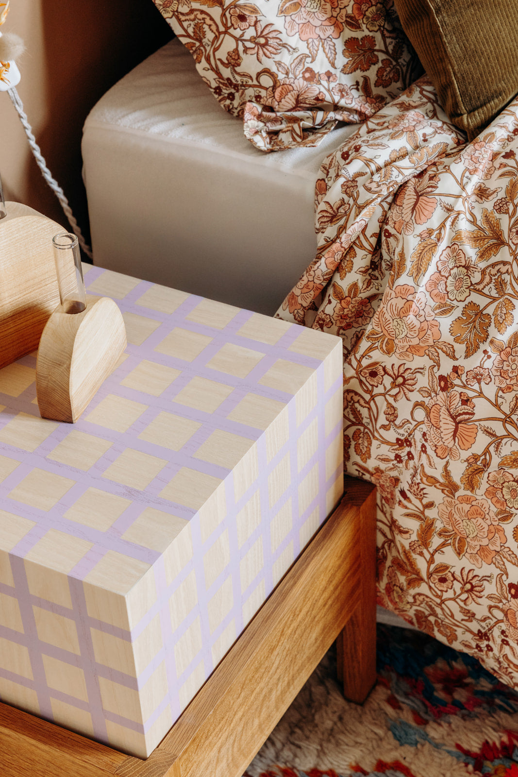Cube en frêne, finition laque et vernis